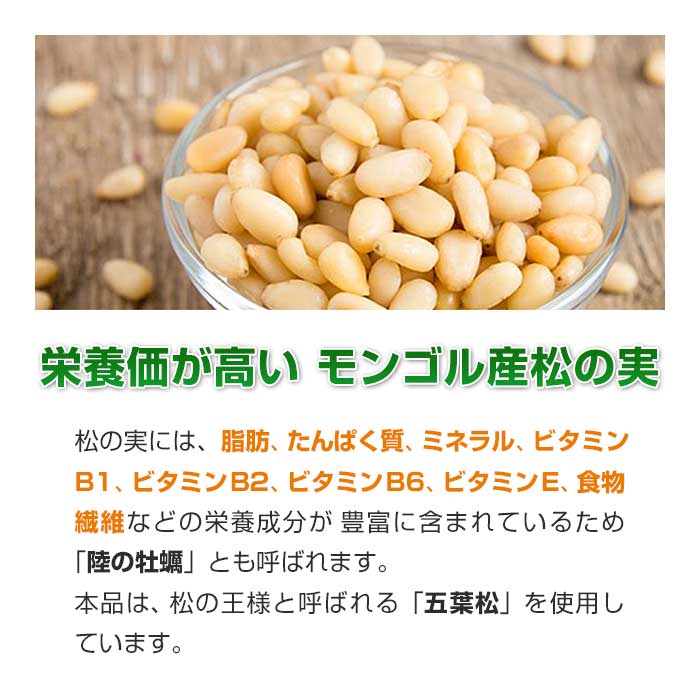 モンゴル全土から集められた貴重な松の実は現地で加工し、新鮮なまま日本へ輸入されています。日本では高度な異物選別を行っていますので高品質な松の実を皆様に安心して提供いたします。もちろん無農薬・無添加の天然品です。