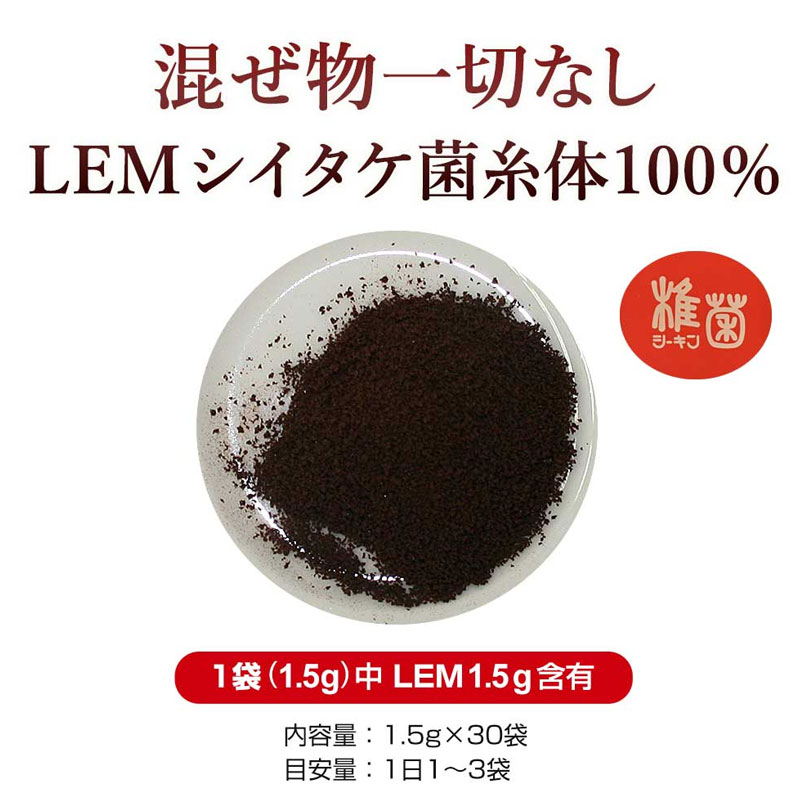 ■1袋(1.5g)中 LEM(シイタケ菌糸体培養培地抽出物)1.5g(100%)