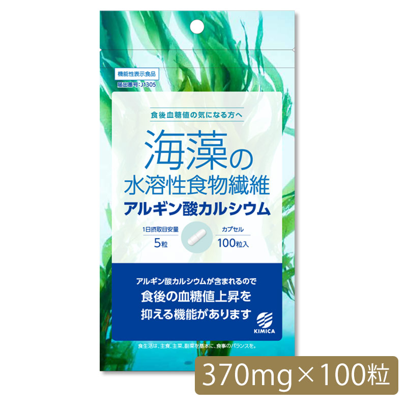 「キミカ アルギン酸カルシウム(カプセル)」は、天然の海藻から高純度のアルギン酸カルシウムを抽出・精製し、召し上がりやすいカプセルに詰めた、機能性表示食品(届出番号:J1305)です。