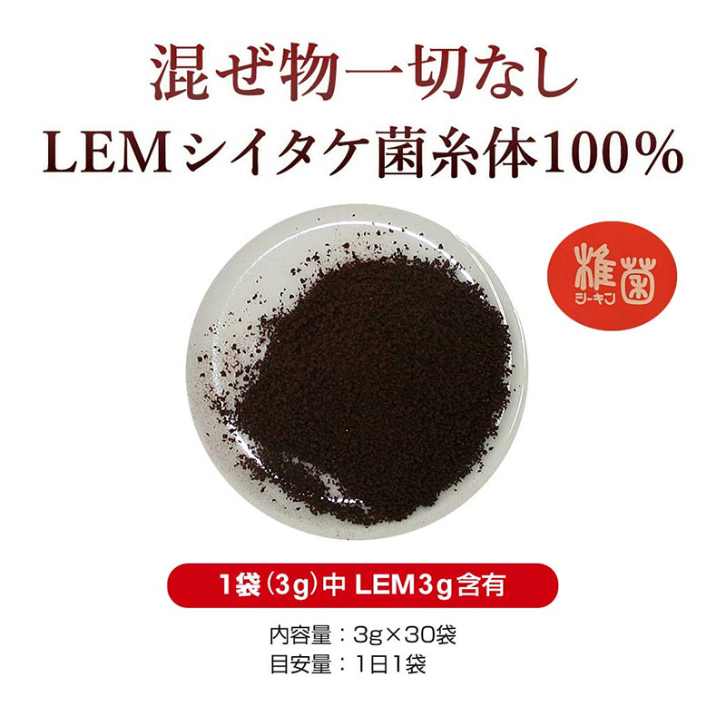 ■1袋(3g)中 LEM(シイタケ菌糸体培養培地抽出物)3g(100%)