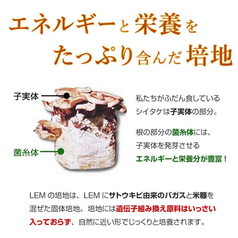 「LEM」1gを生シイタケに換算(計算上)すると約2kg(乾燥シイタケ約200g)に相当します。