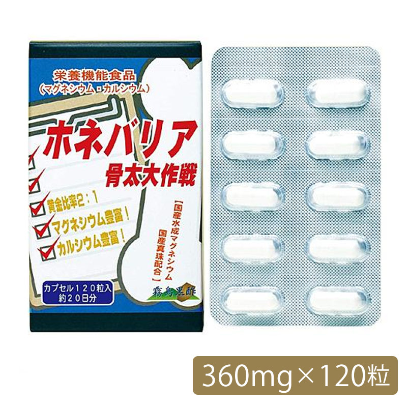 ホネバリア(骨太大作戦)は、カルシウムとマグネシウムをバランス良く摂取出来る栄養機能食品です。
