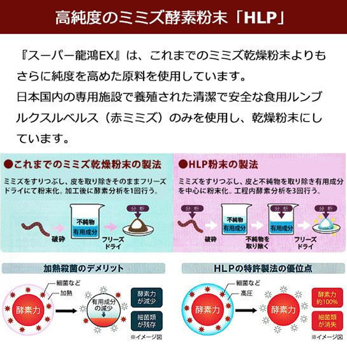 高純度のミミズ酵素粉末(HLP)とは