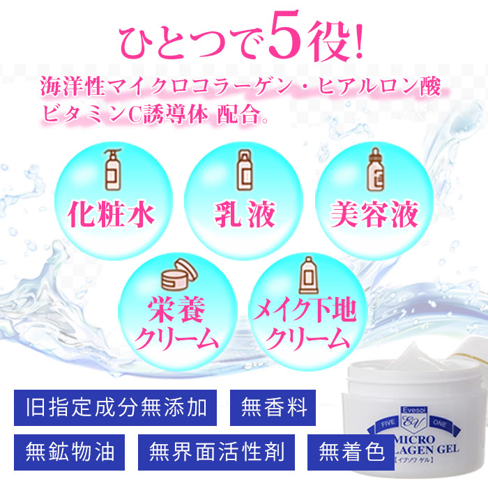 「イブソワ マイクロコラーゲンゲル(125g)」は、美容成分である海洋性マイクロコラーゲン(浸透タイプ)、ヒアルロン酸、3種の海藻類、ビタミンC誘導体を贅沢に配合しました。