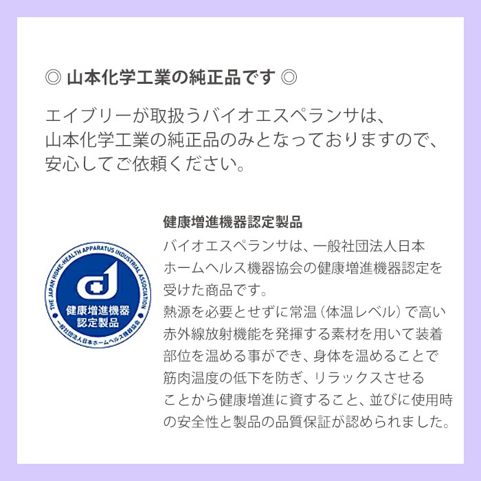 ●高レベルで常温赤外線を放射する素材をベースとした新素材「バイオエスペランサ®」を使用。