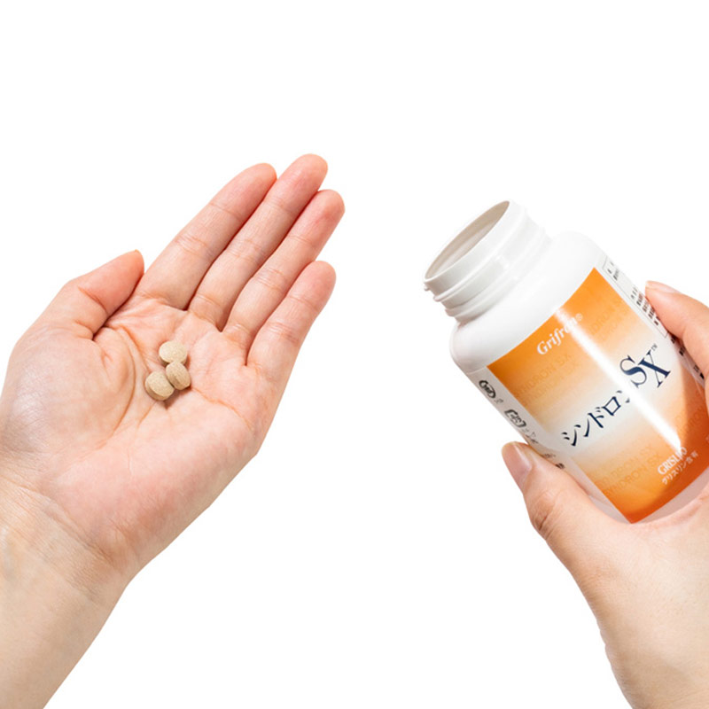 「シンドロンSX」は、マイタケから抽出したグリスリンという活性物質とマイタケ子実体パウダーを主成分に錠剤にしたサプリメントです。