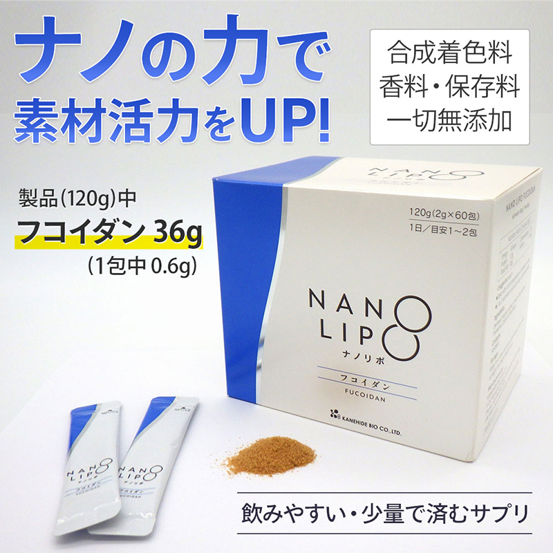 「飲みやすさ」「飲む量が少量で済む」「吸収」をコンセプトに、ナノテクノロジーを駆使して開発されたNANOLIPOフコイダンです。