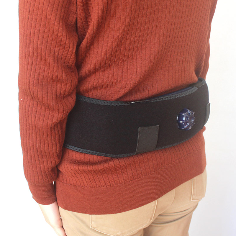 マジックベルト付きでしっかり腰に固定できる画期的な湯たんぽ。