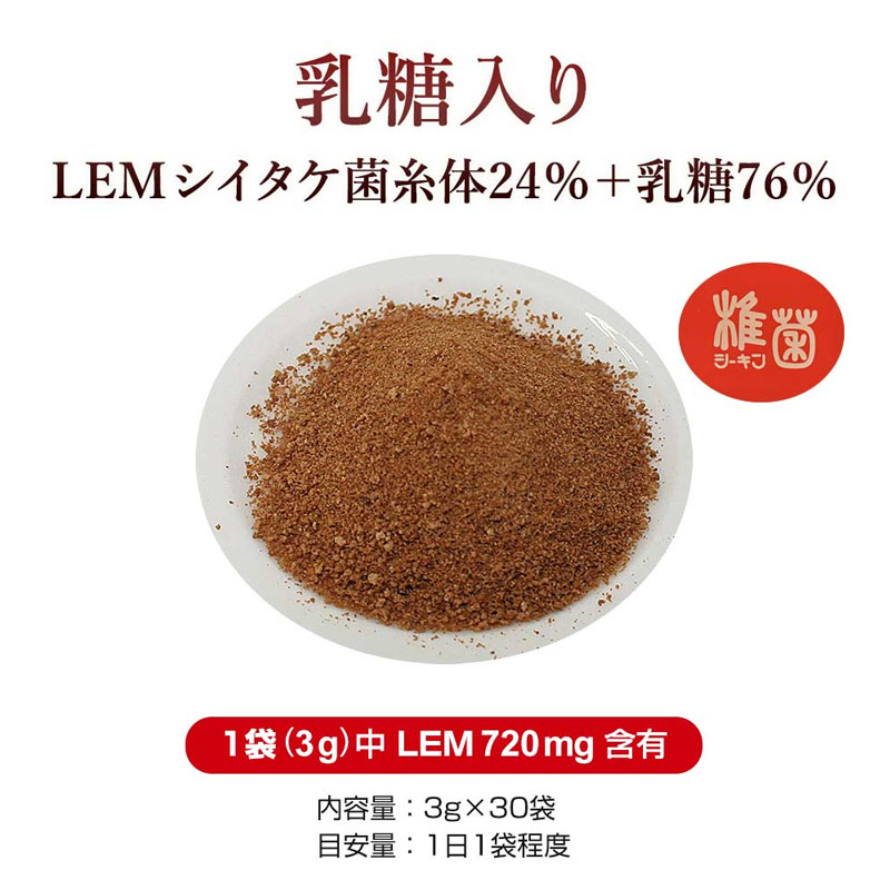 ■1袋(3g)中 LEM(シイタケ菌糸体培養培地抽出物)720mg
