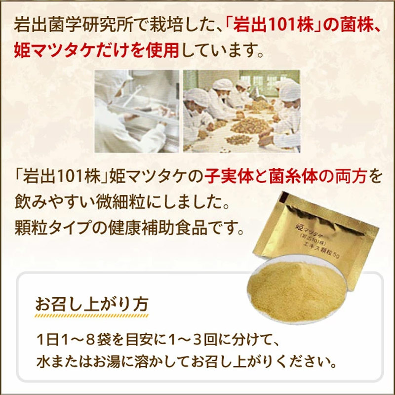 「姫マツタケ顆粒」は、姫マツタケ(岩出101株)を高濃度に抽出した顆粒タイプの健康補助食品です。