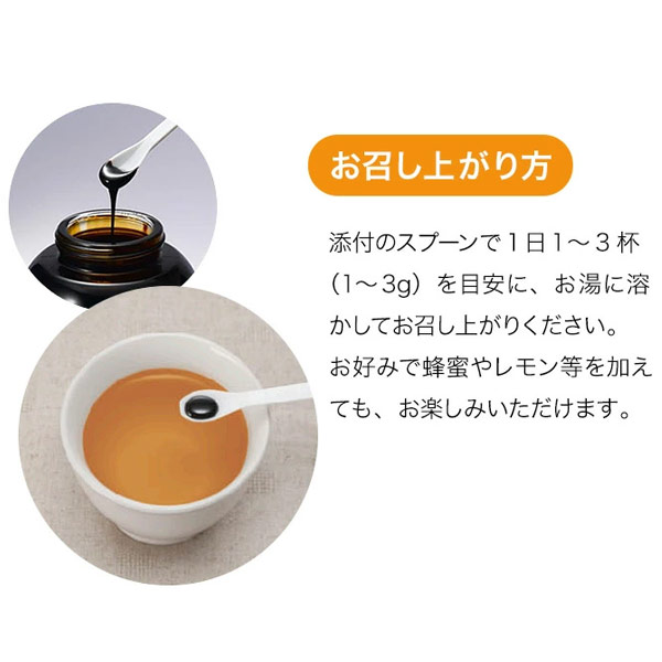 | 召し上がり方 | 添付のスポーンで1日1~3回(1~3g)を目安に、お湯に溶かしてお召し上がりください。 お好みで蜂蜜やレモン等を加えても、お楽しみいただけます。 |