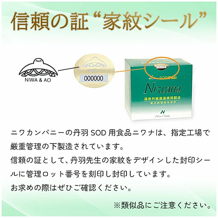 「ニワナ」は、SODの世界的権威である丹羽医学博士の開発した特許製法を忠実に守り製法された「ニワカンパニー」の商品です。
