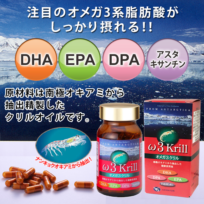 「オメガ3クリル」は、今注目のオメガ3脂肪酸を豊富に含む、クリルオイル配合の加工食品です。